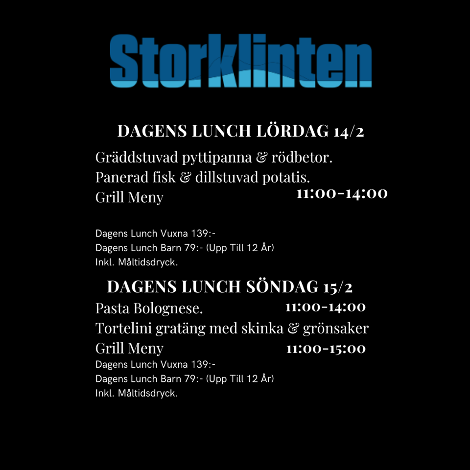 Nedan ser du de menyer vi erbjuder. Vår restaurang har öppet alla dagar som nedfarterna har öppet.
